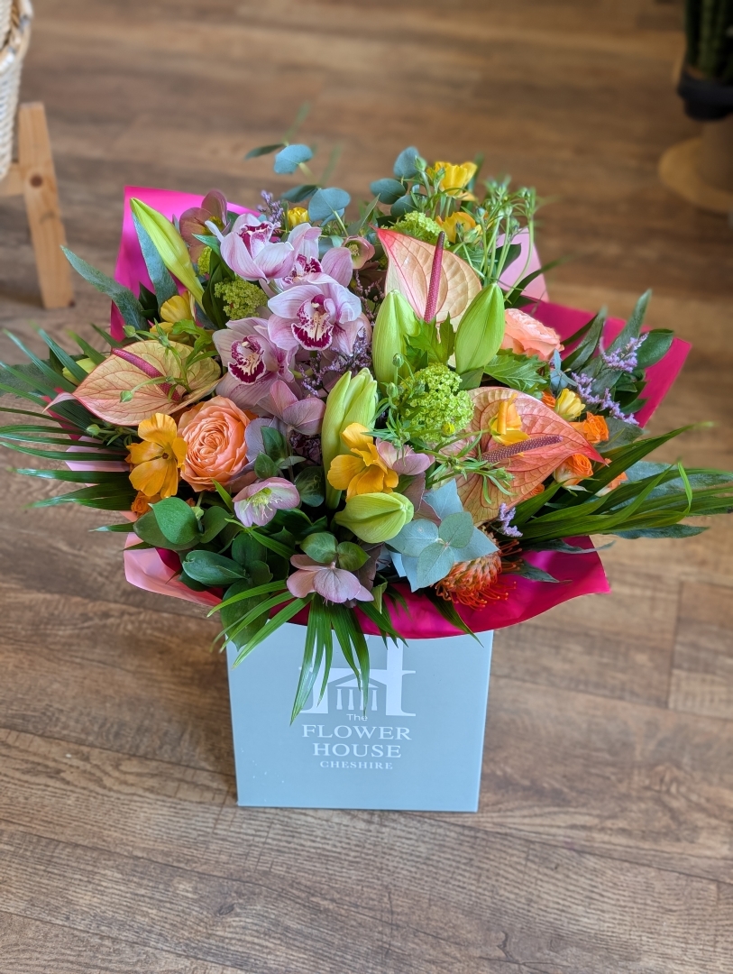 All of our bouquets are made to order by one of our Flower House florists and come beautifully arranged and packaged in a gift bag or gift box ready to be placed into a vase.