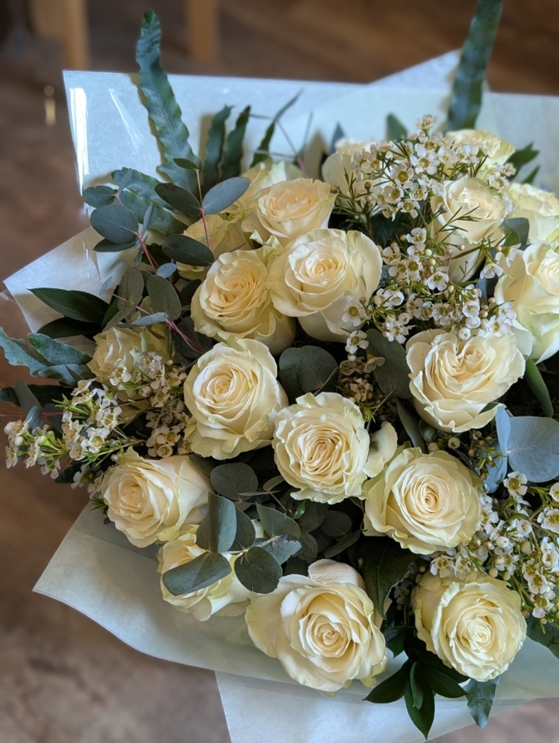 Each bouquet contains your choice of roses plus a fresh selection of foliage handpicked to compliment your design.