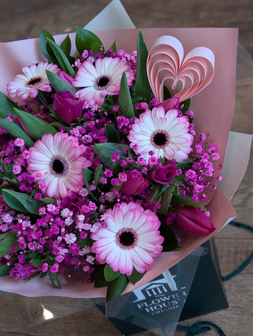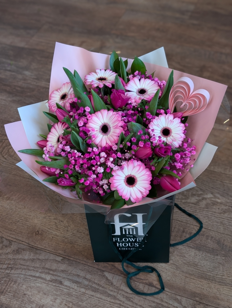 All of our bouquets are made to order by one of our Flower House florists and come beautifully arranged and packaged in a gift bag or gift box ready to be placed into a vase.