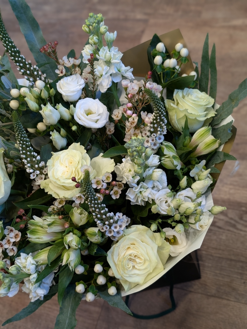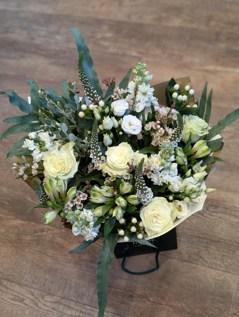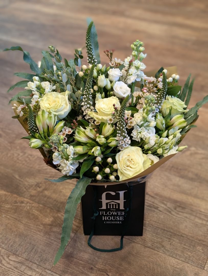 All of our bouquets are made to order by one of our Flower House florists and come beautifully arranged and packaged in a gift bag or gift box ready to be placed into a vase.